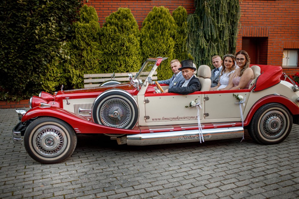 Wielkie ukłony dla Pana Wiesława i jego kierowcy . Mieliśmy zaszczyt jechać NESTOREM do ślubu. Autko z dachem czy bez prezentuje się świetnie. Kierowca kilkukrotnie składał i rozkłada dach na potrzeby fotografa nie było żadnych problemów. Oczywiście wspomnę też, iż auto było podstawione godzinę przed czasem. Przejazd z odkrytym dachem to mega przeżycie, te chwile zawsze powodują uśmiech na naszych twarzach. Gorąco polecamy, naprawdę super autko za rozsądną pieniądze.