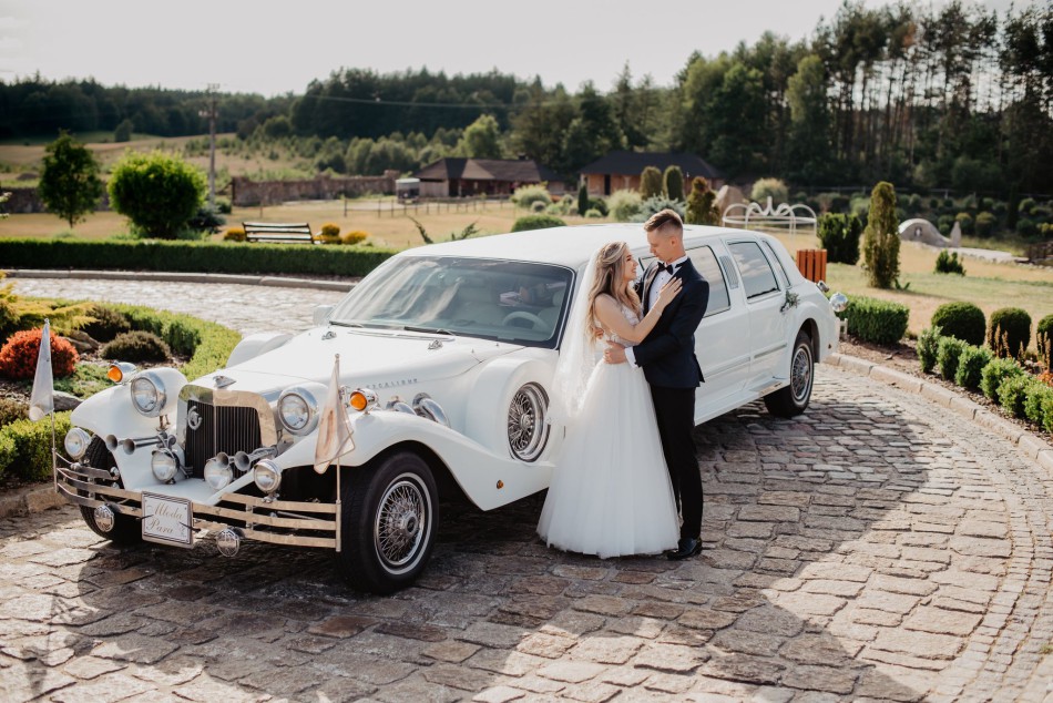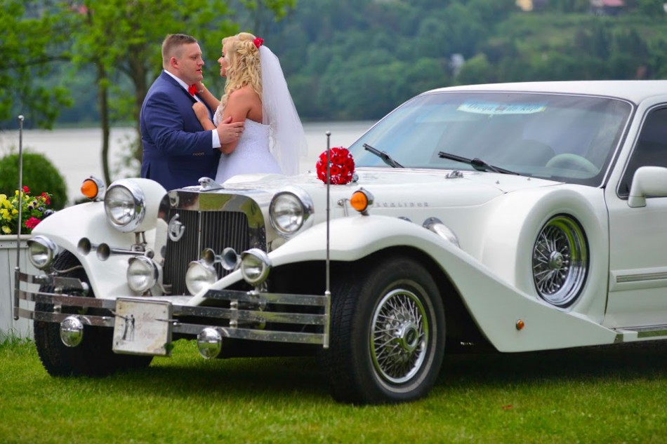 EXCALIBUR przepiękny i bezkonkurencyjny. Trudno o piękniejszy samochód. Auto podjechało przed czasem, dostaliśmy białe GOŁĘBIE GRATIS. Szofer w białych rękawiczkach. Bardzo elegancko i szykownie. POLECAM. Teresa i Maciej B.